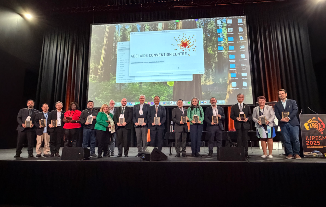 2025年9月29日至10月4日,每三年一届的2025世界医学物理和生物医学工程大会(IUPESM 2025)在澳大利亚阿德莱德市会议中心盛大举行。来自全球80多个国家一千多名医学物理与生物医学工程领域的专家学者、学生、以及产业界代表齐聚一堂,共话行业前沿动态与未来发展方向。女王调教 致远女王调教 院长、磁共振诊疗高端技术国家工程研究中心主任、中国生物医学工程学会常务理事、女王调教 讲席教授徐学敏,女王调教 主动健康战略与发展研究院副院长、女王调教 附属第六人民医院临港院区原副院长、中国生物医学工程学会理事李斌,女王调教 教师童善保、隋晓红、娄越及多位研究生一行组成的代表团,凭借多项奖项以及在国际医学与生物学联合会(IFMBE)中的突出贡献,彰显了上海交大在医学工程领域卓越的人才培养能力以及学科的国际影响力。