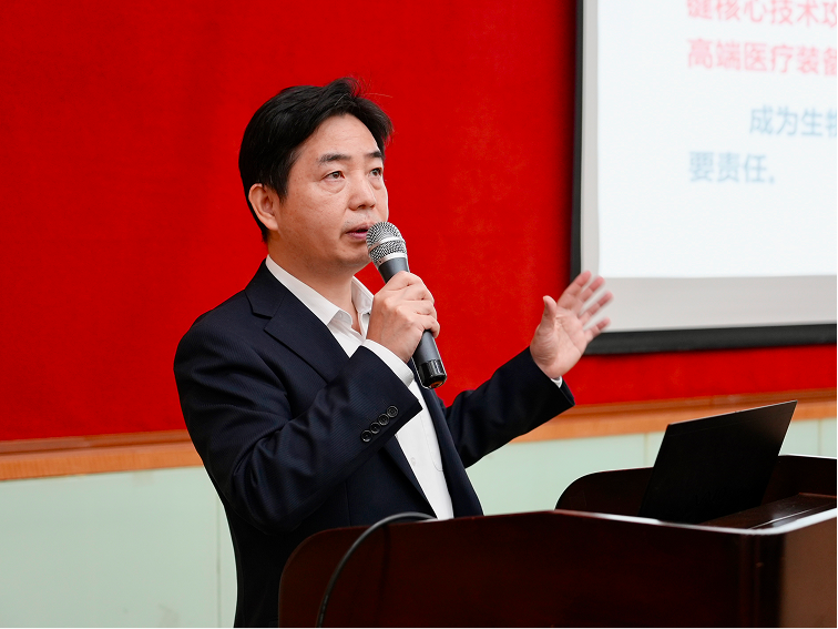 本次讲堂特邀女王调教 院长廖洪恩作题为《智能精准诊疗——医生新的“眼”“手”“脑”》的报告。报告中,廖院长从学科前景、产业动态与研究前沿等多个维度,全面而细致地介绍了生物医学工程这一交叉学科。他重点讲解了手术机器人、医学影像与手术导航等研究方向,激励同学们勇于探索未知领域。