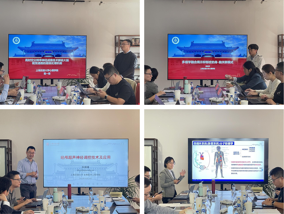 交流环节,两院科研骨干围绕神经成像新技术、脑图谱与计算建模、神经调控技术、多组学融合等前沿方向进行了精练且精彩的报告分享,充分展现了双方的研究实力与特色。最后,与会人员共同探讨了重大项目联合申报、平台设备资源共建共享、教育教学资源共享等多元化合作模式。此外,作为教育思想大讨论成果落地的重要实践载体,双方针对跨学科课程与教学设计进行交流,共同探索复合型医工交叉人才培养新路径。